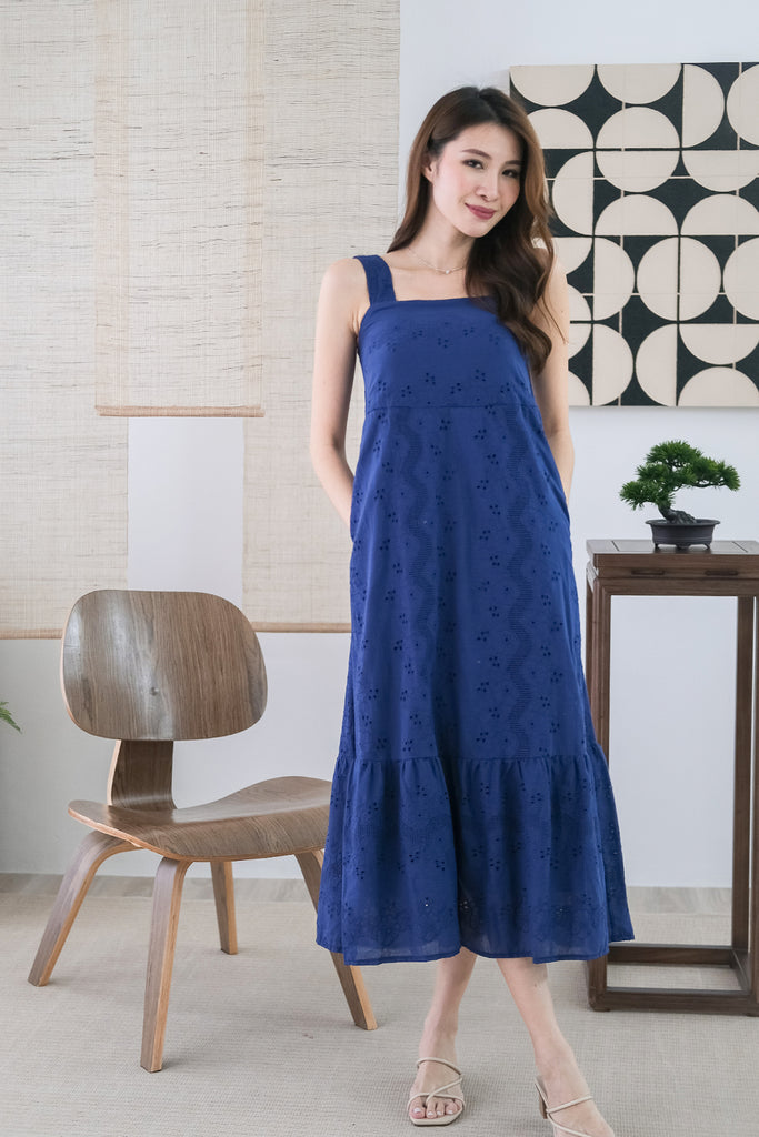 Jaena Eyelet Ruffle Hem Maxi - Navy [XS/S/M/L/XL]