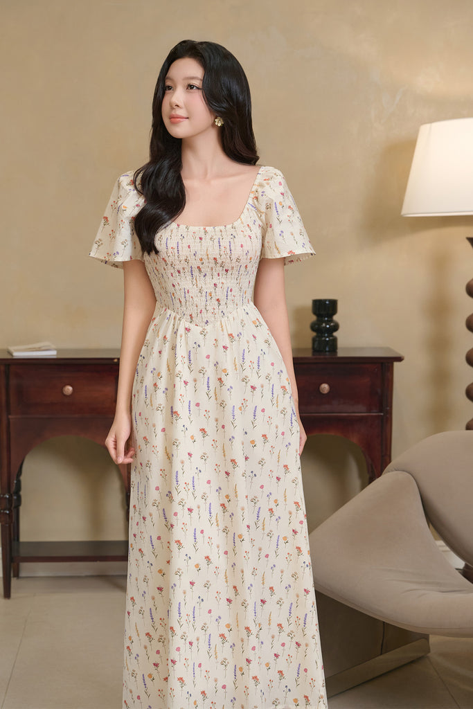Meadow Whisper V-waist Smocked Dress - Flower Stalk [XS/S/M/L/XL/2XL/3XL]