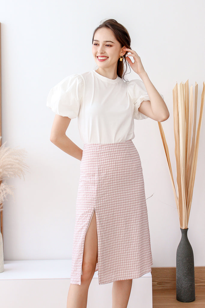Cavine Zipper Slit Skirt - Nude Pink Plaids [XS/S/M/L/XL]
