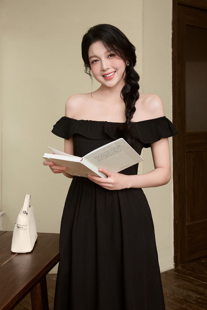 Celine Ruffle Square Neck Maxi Dress - Black [XS/S/M/L/XL/XXL]