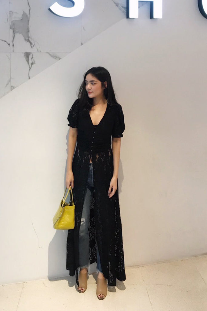 Iris Lace Maxi/Long Top - Black [Free size]