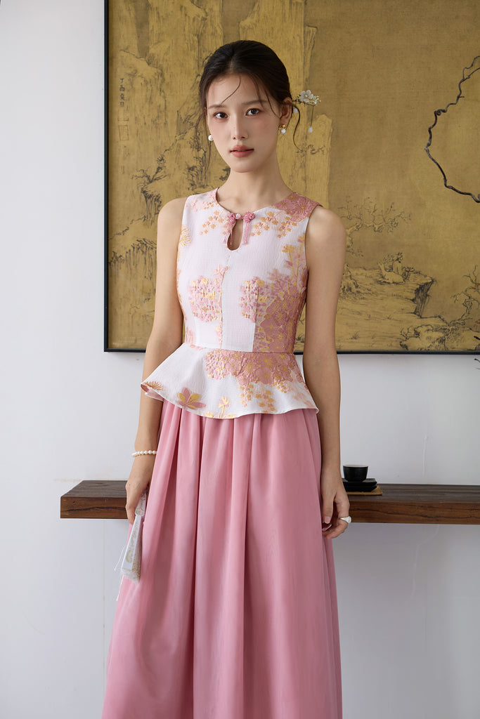 Prelaunch: 玉序 Jade Poise Peplum Mesh Cheongsam Dress - Pink [XS/S/M/L/XL/XXL]